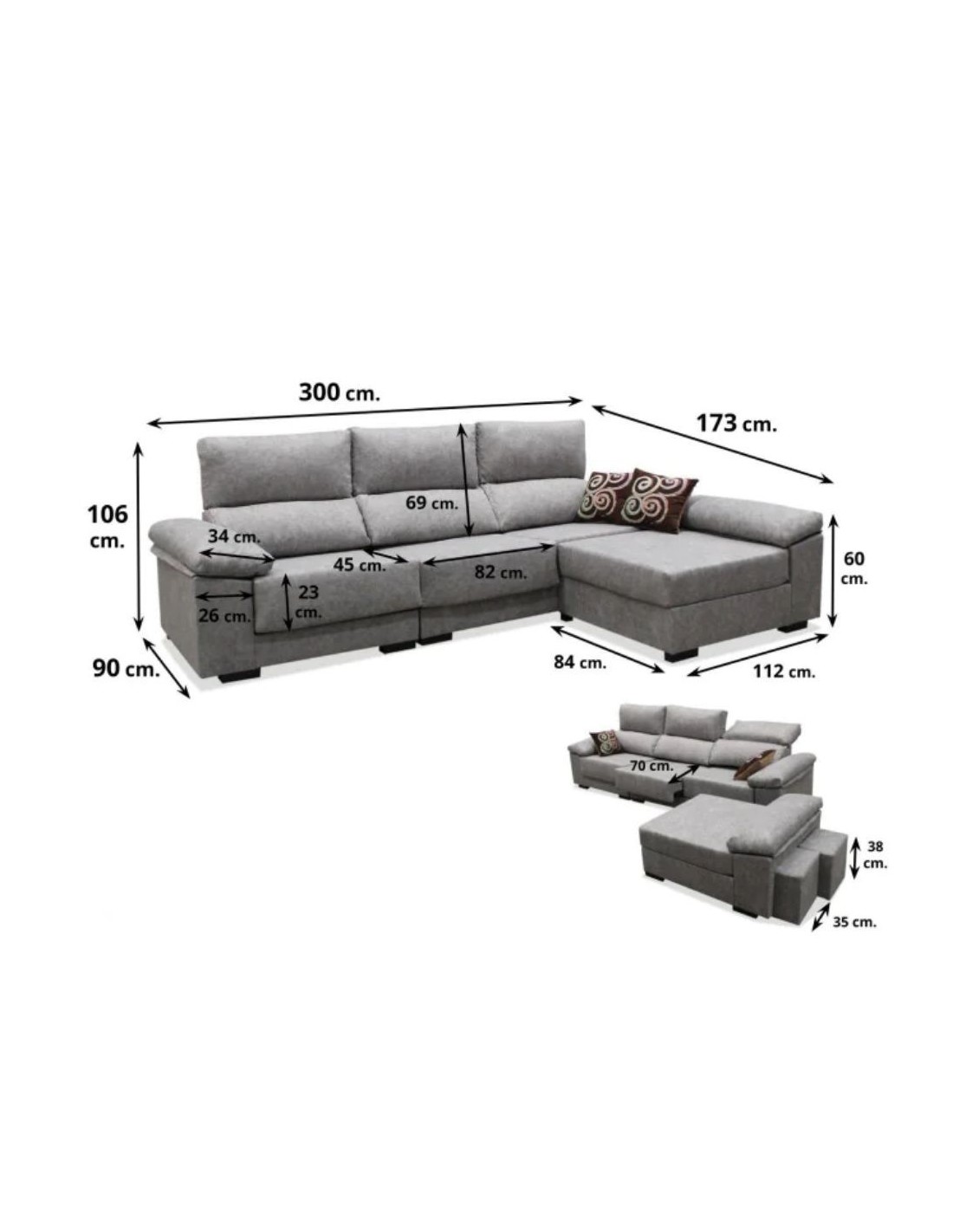 Descubre nuestra cheslong modelo Alfredo, una opción asequible sin comprometer la calidad. Con 2 taburetes en el brazo del puff movible, asientos deslizantes y respaldos abatibles, este sofá te ofrece comodidad y versatilidad. Además, su tejido Easy Clean de fácil limpieza garantiza una mayor durabilidad. ¡No dejes pasar esta oportunidad!
